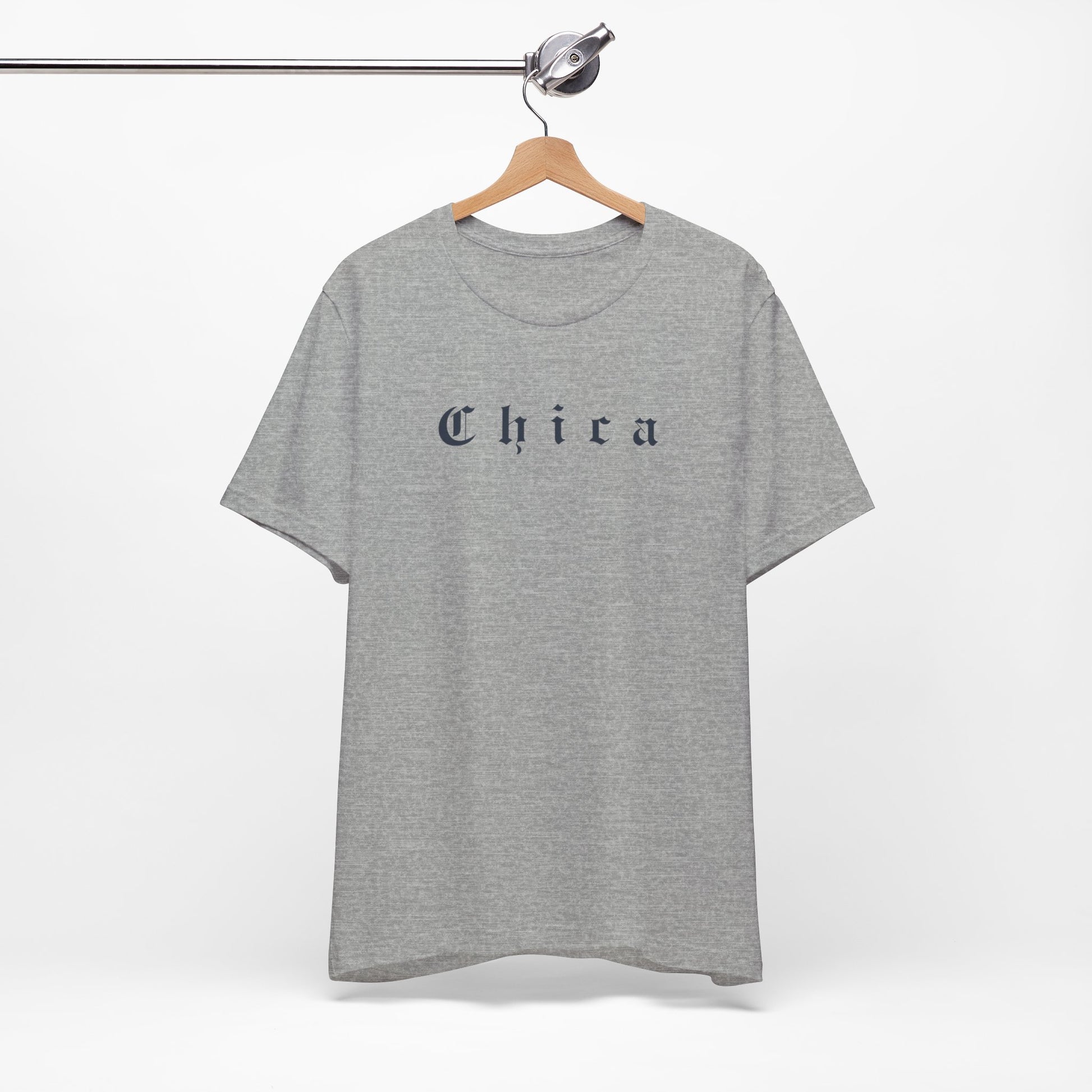 A comfortable and versatile T-Shirt featuring the design 'Chica T'. Perfect for casual wear, this T-Shirt is made with 100% Airlume combed and ring-spun cotton, making it lightweight and breathable. Suitable for adults and ideal for layering, this T-Shirt offers a retail fit that is suitable for various settings.