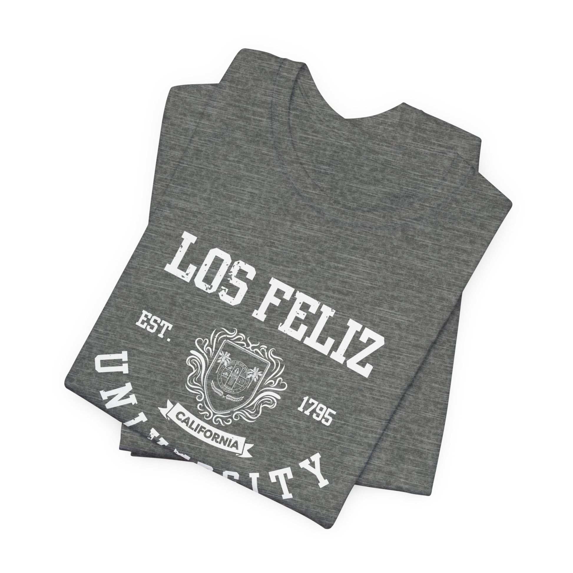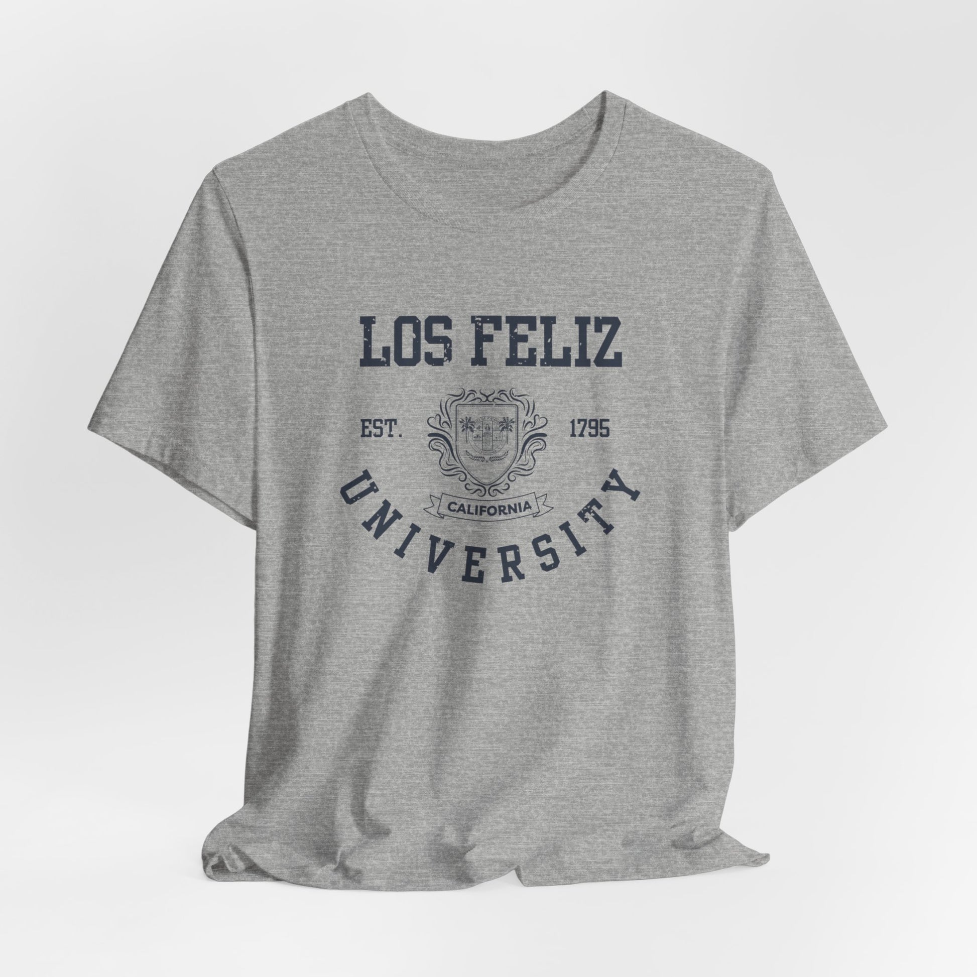 A trendy and casual Los Feliz University T-shirt that is perfect for everyday wear. It gives off a laid-back and cool vibe, suitable for students, alumni, and fans of the university. Ideal for back-to-school season, game days, and as a comfortable loungewear option. The 100% cotton fabric is lightweight and breathable, making it suitable for active and leisure wear.